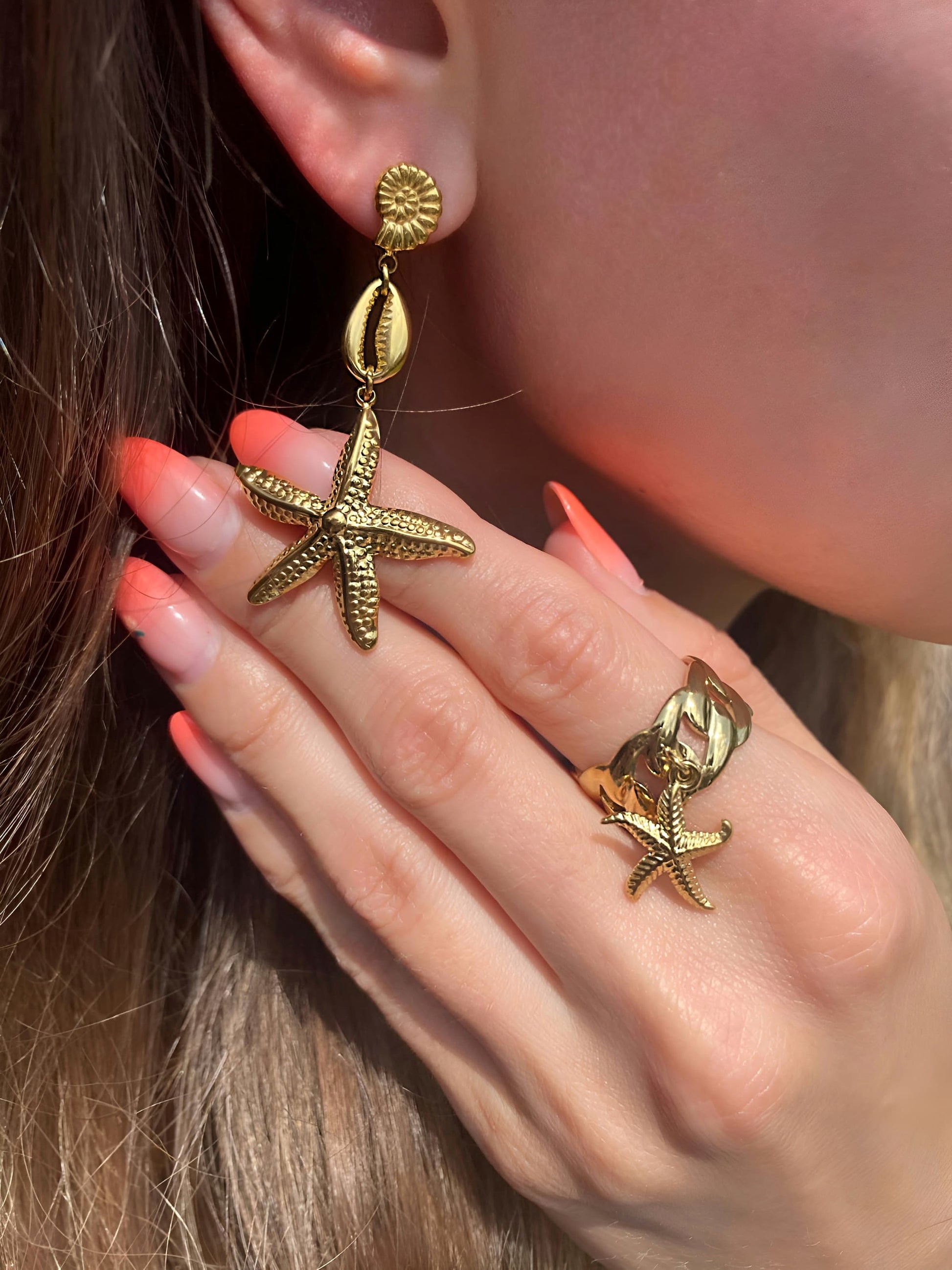 Son corps ajouré apporte légèreté et modernité, tandis que sa breloque étoile de mer, finement travaillée, évoque les douces journées à la plage