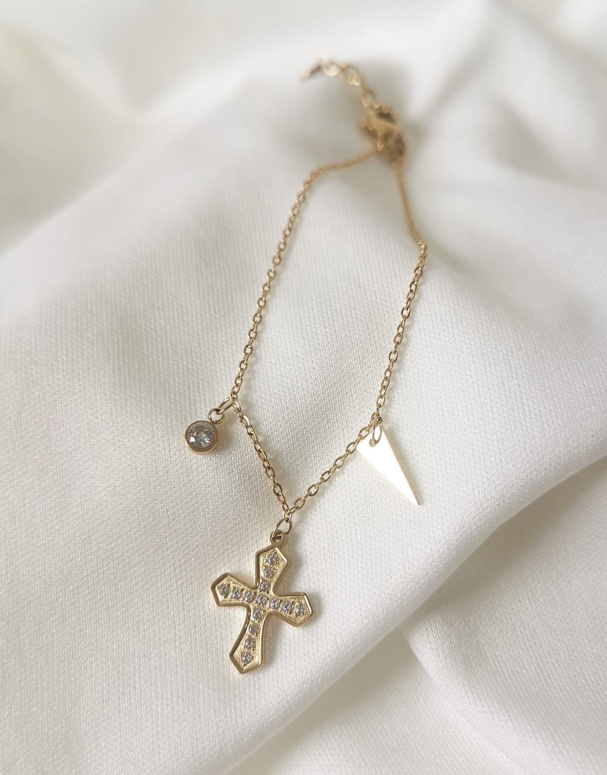*Un superbe bracelet d'une chaîne dorée, orné de pampilles scintillantes, de pendants en strass et d'une croix, le tout ajustable pour un style personnalisé. fermoir mousqueton